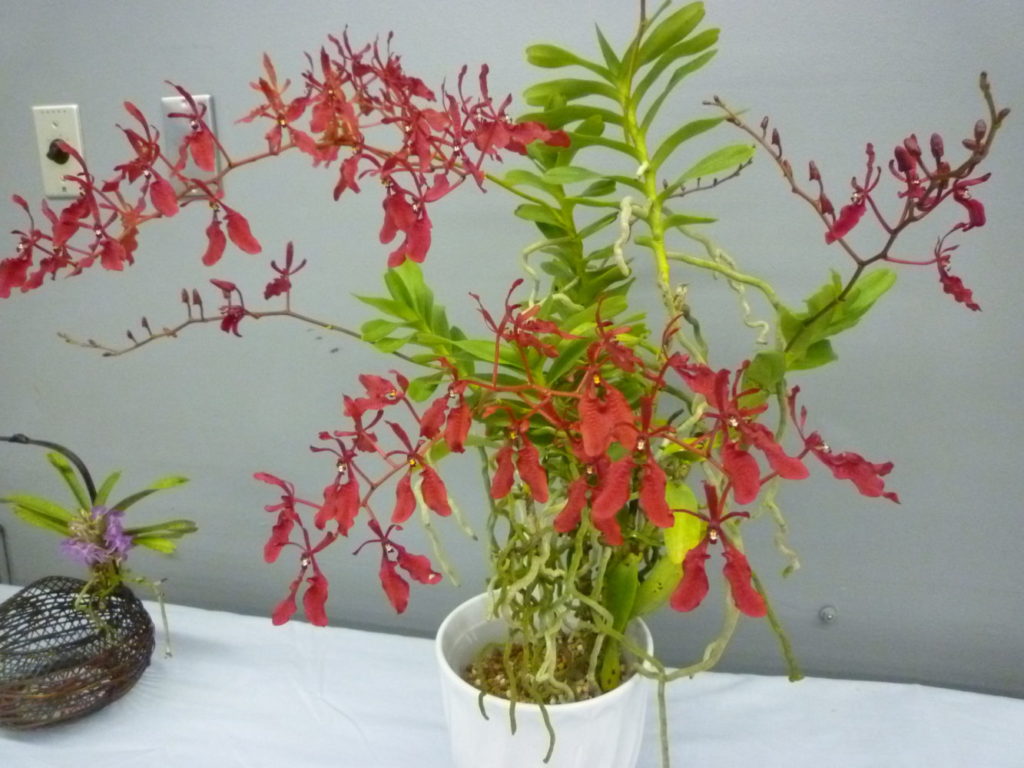 shyrsiflorumです昨年より房の数がたくさん着きましたので出品されていただきました。ただ、少ししおれ出したのが残念でした。もう少し開花を遅らせるような手段はないでしょうか。ご指導ください。