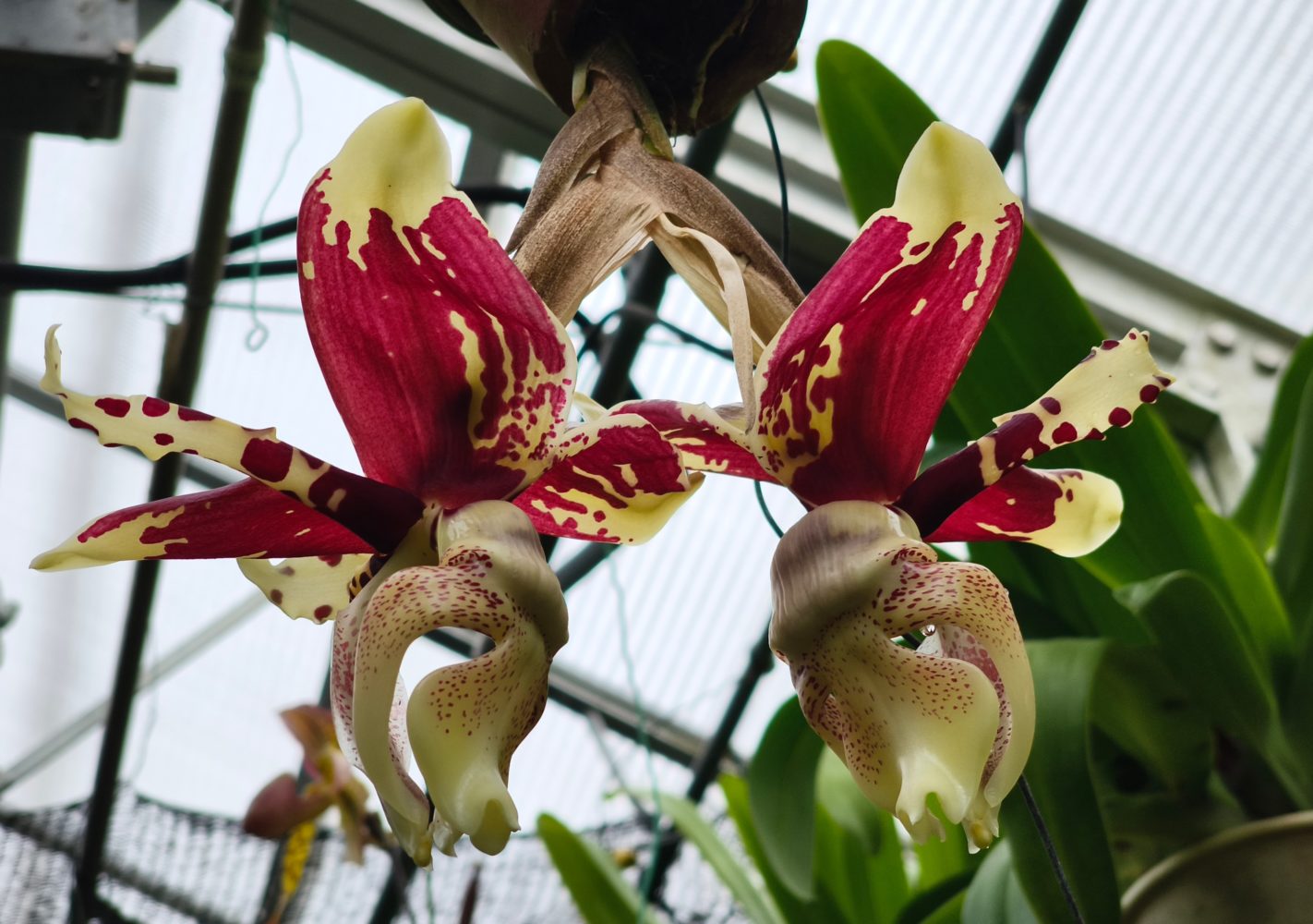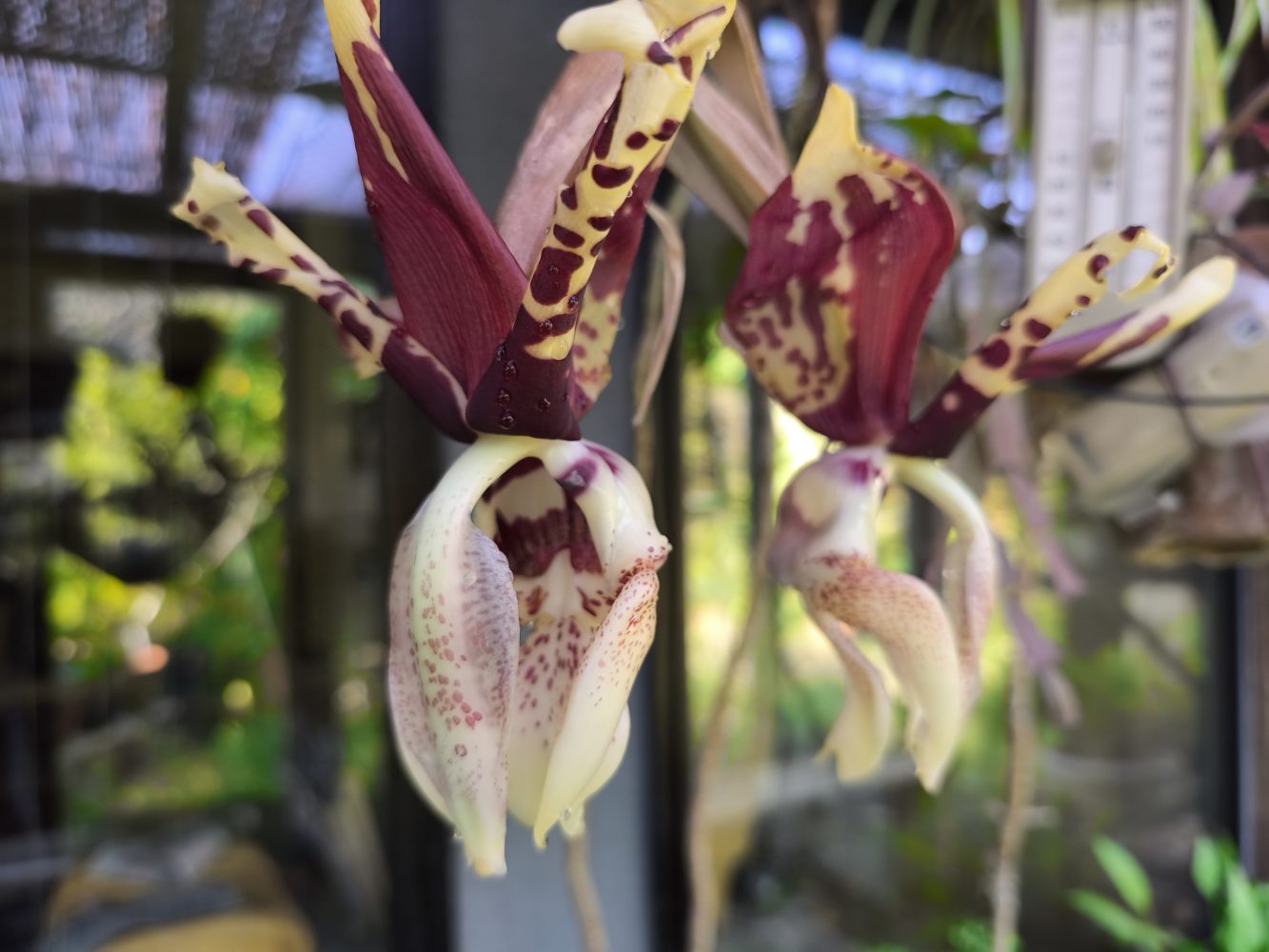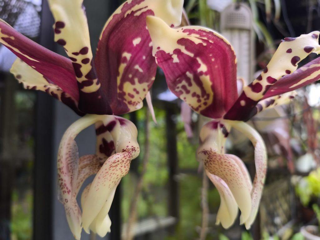 栽培は、半日陰(50%遮光)、夏は最高30度以下18度以上、冬は最高18度~7度程度の環境下で管理し、コンポストをドライアウトさせないように注意しなければならない。スタンホペアは、近縁の属のコリアンテスと並んで珍花、奇花、の代表格である。とにかく、ちょっと見ただけでは、どこがリップでどこがセパルか、蘂柱どっちだろう???と首をひねるばかり。人に見せて自慢しようとすると枯れてしまう。花は下からのぞくようにしなければならない。香りはお世辞にも良いとは言えない。それでも、この花に強烈に惹かれる人は多い。